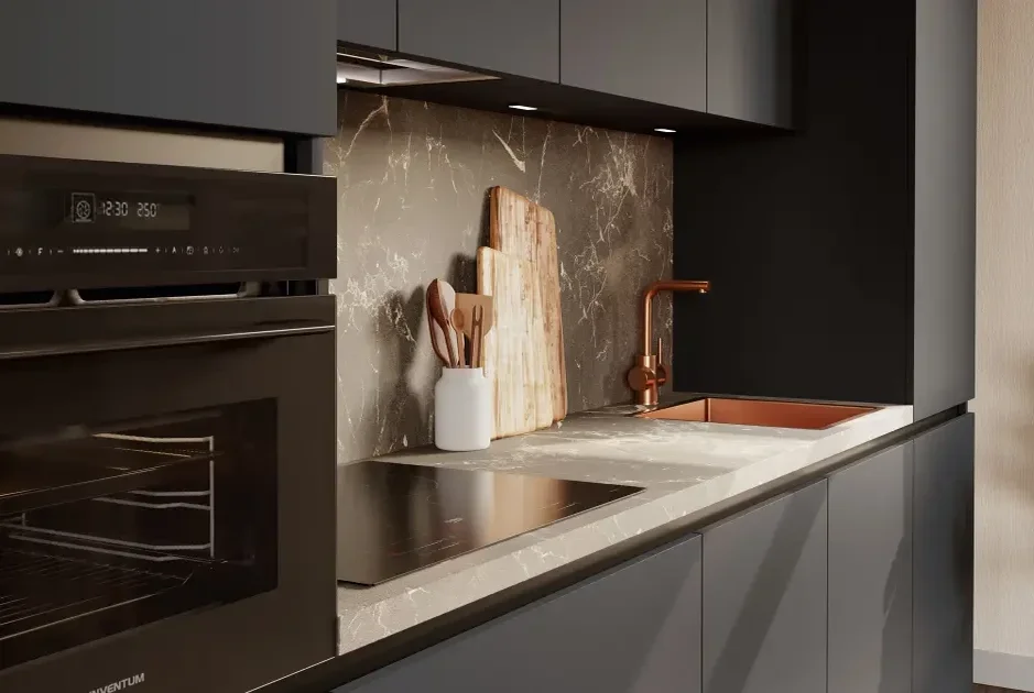 Sand-colored fronts with anti-fingerprint coating - Worktop