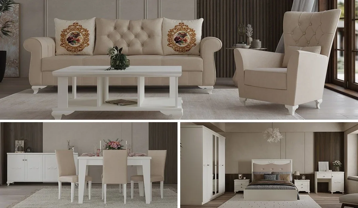- De meubels worden bij u thuis bezorgd en gemonteerd. ( Woonkamerset - Slaapkamerset - Eetkamerset )