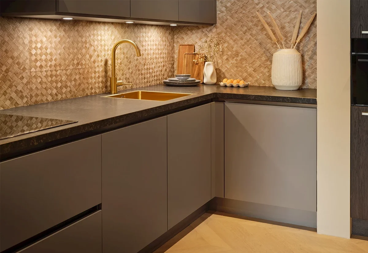 Matte fronten in taupe kleur - Werkblad