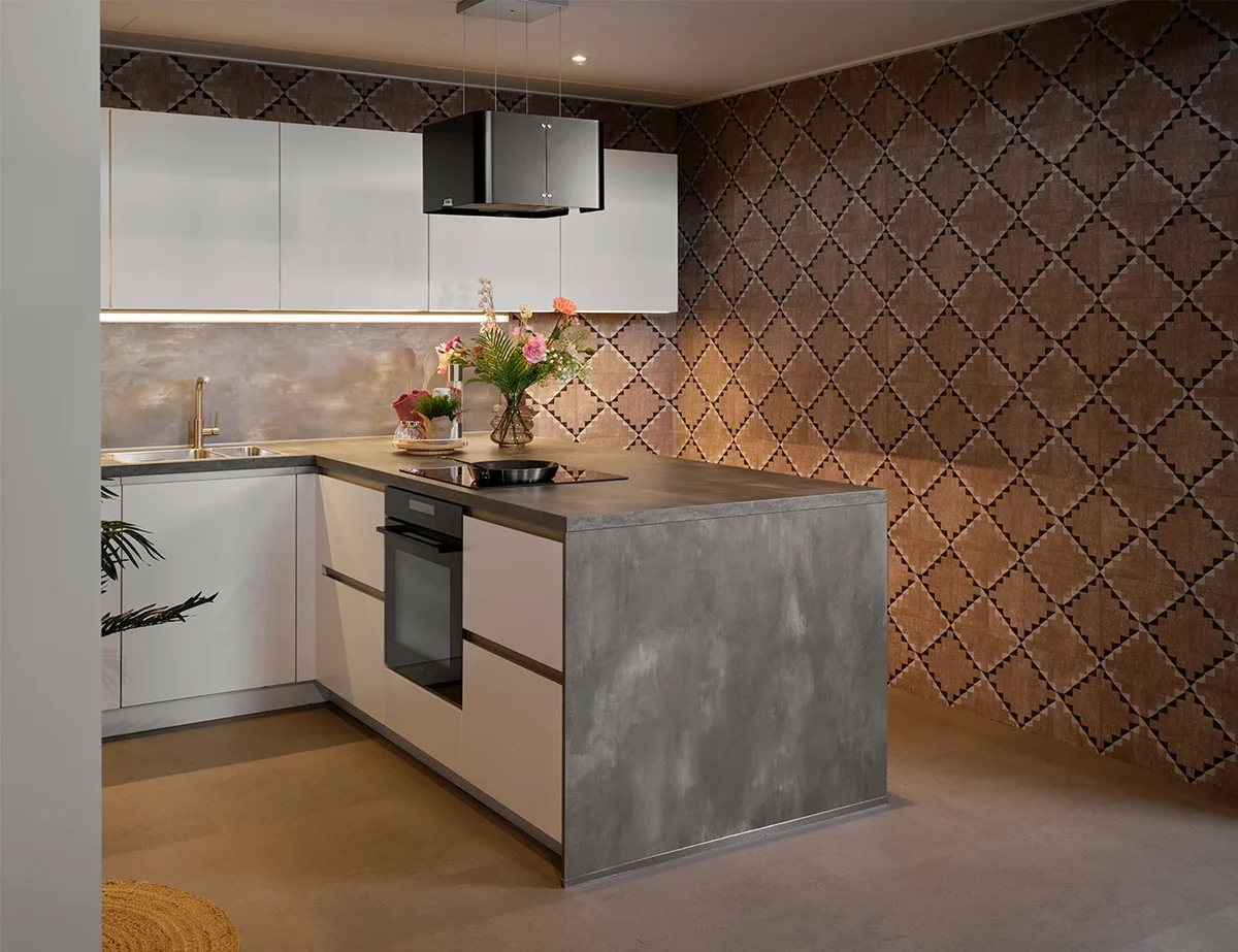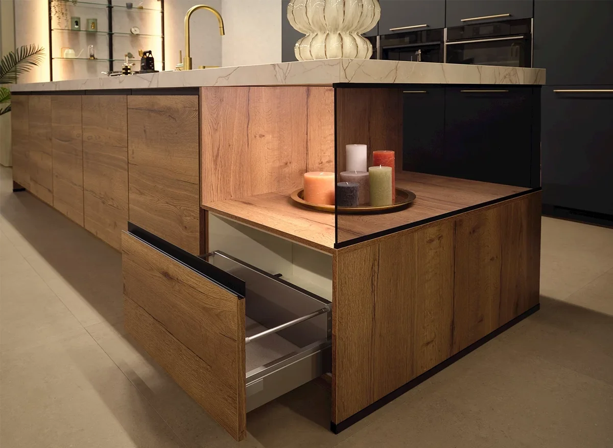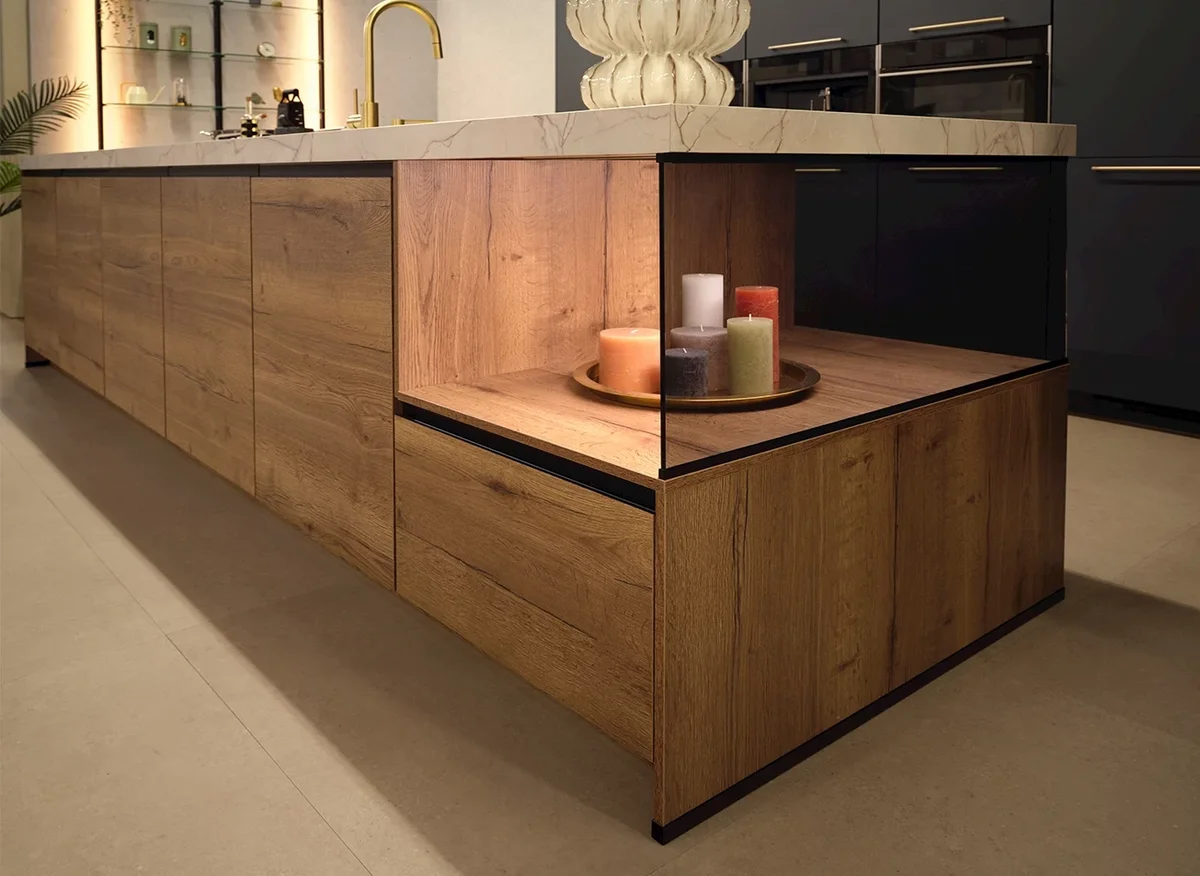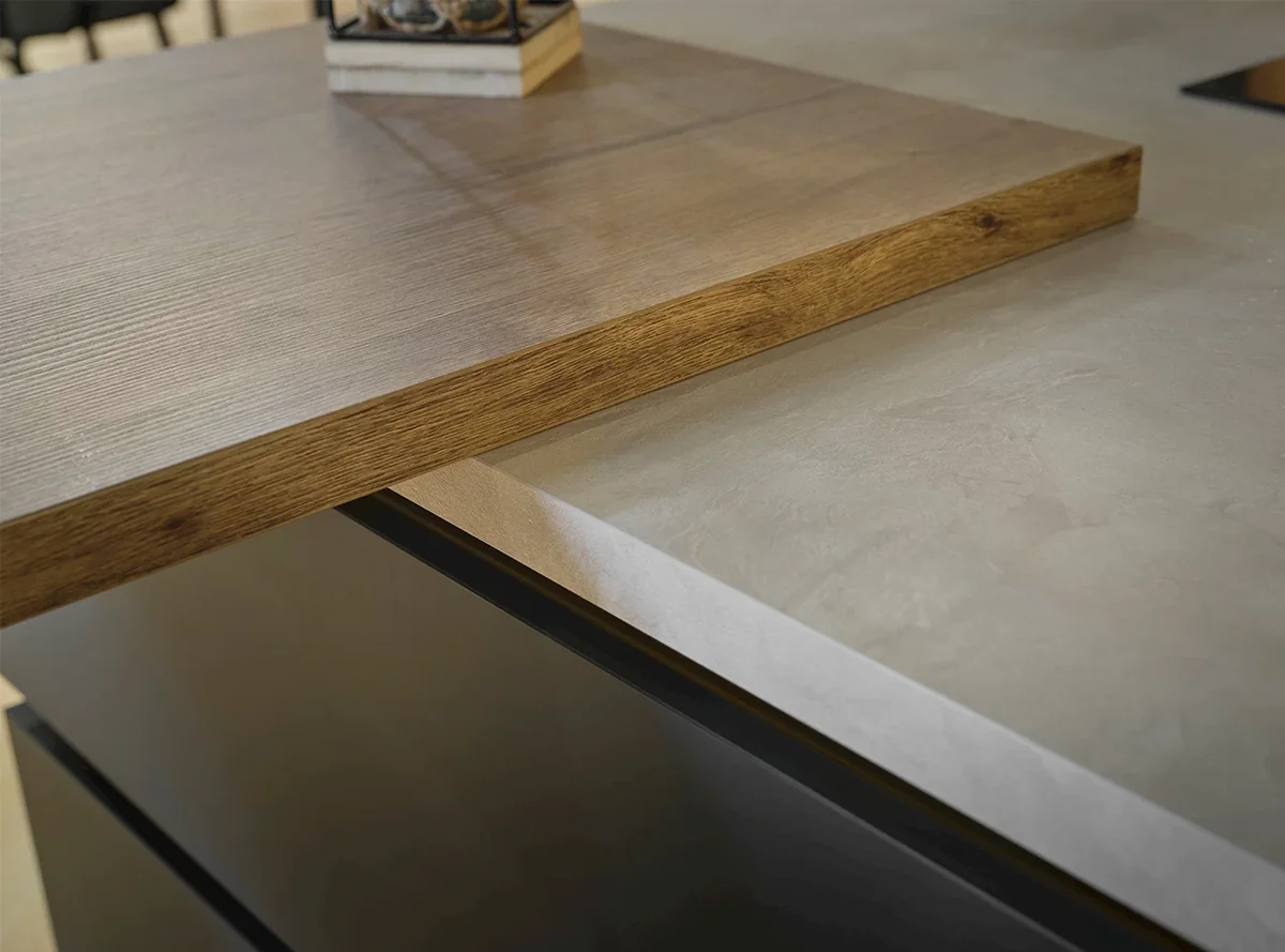 Aantrekkelijke houtlook en steengrijze fronten - Werkblad