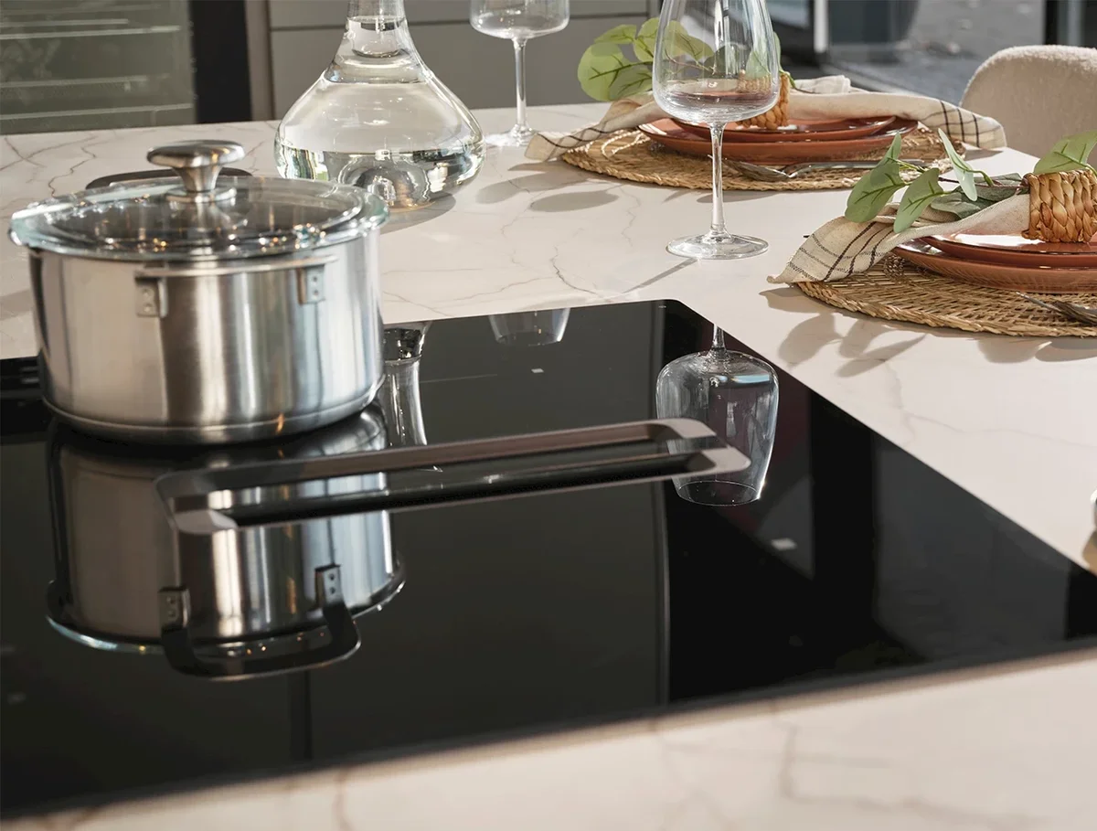 Inductiekookplaat met geïntegreerde afzuigkap